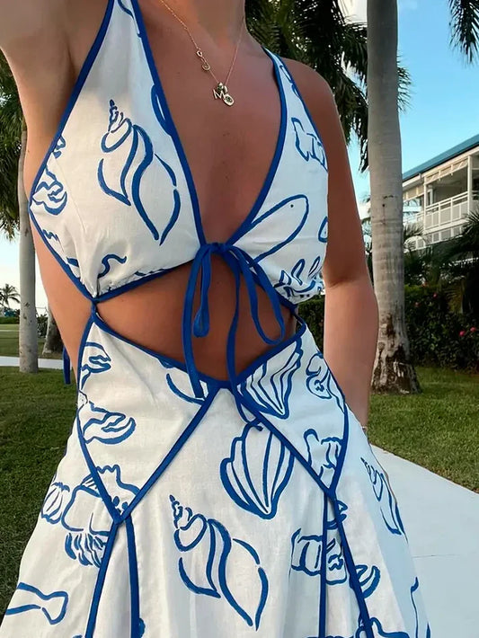 Mediterranean Breeze Cut-Out Maxi Dress