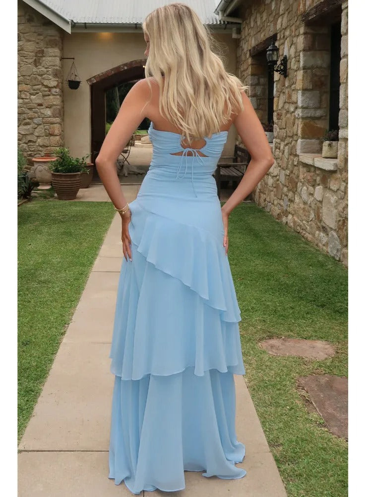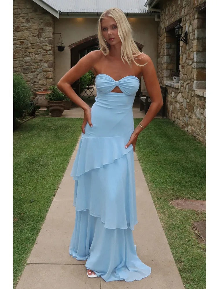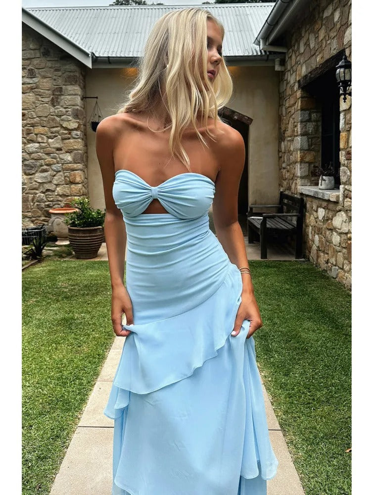 The Cut-Out Layered Harmony Dress is made for women who shine effortlessly. With its soft layered silhouette, delicate front cut-out, and elegant tie-back closure, this dress is the perfect choice for garden parties, seaside weddings or sunset dinners. Romantic and airy, it floats with every step — catching eyes and creating memories.
